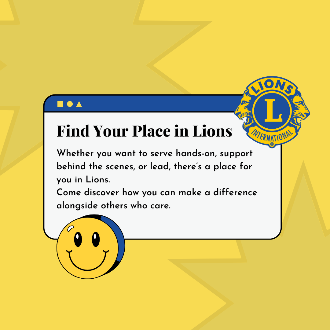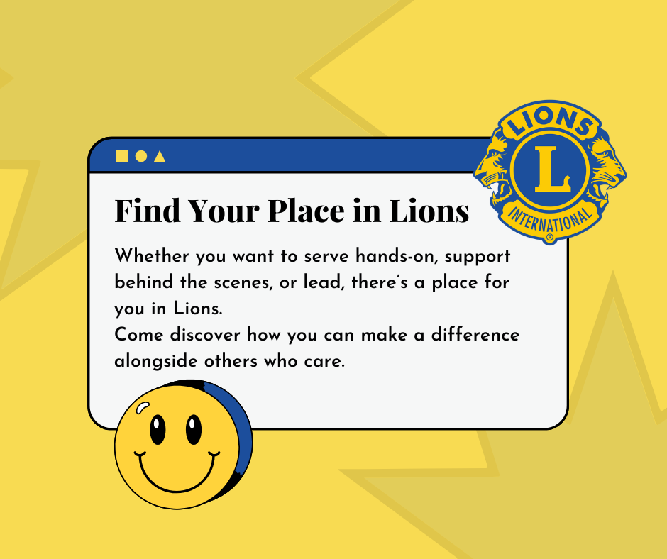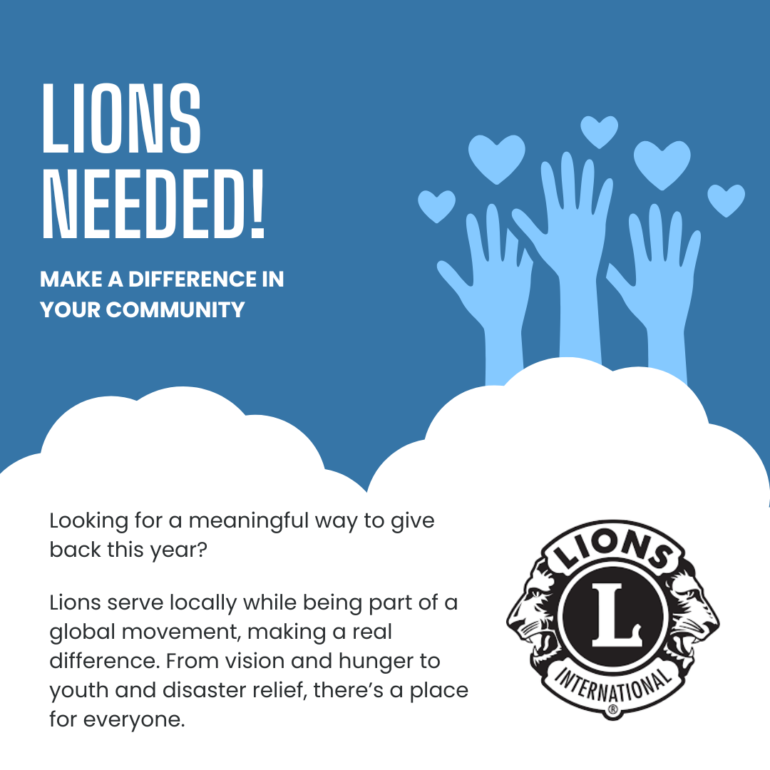 Many people want to volunteer — they just donβt know how or where they fit in. This campaign helps them see that Lions Clubs offer a wide variety of ways to serve, lead, learn, and belong. From hands–on service projects to leadership development, fellowship, and fun. Lions provide opportunities for people to discover causes, skills, and connections.